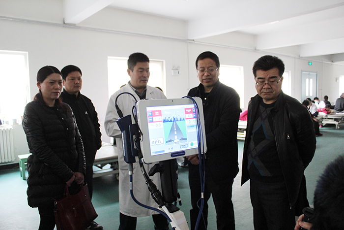 徐传荣向客人介绍了科室现有医务人员的情况以及主要开展的先进康复治疗技术、仪器设备和科室专长。客人们详细地了解了初建科室所必备的仪器设备以及日后需要开展的项目,探讨有关人员培训的问题,并依次参观了蜡疗、言语吞咽治疗、运动治疗、中医康复等项目,最后与徐主任深入探讨了关于科室管理的问题。