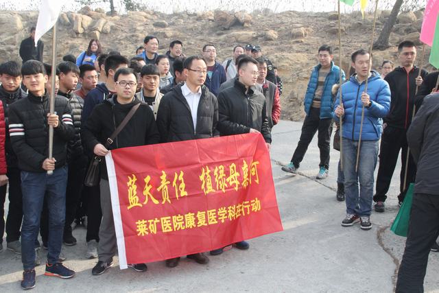 在第38个植树节到来之际,由大众网莱芜频道和中国农业银行莱芜分行发起并主办的3·12莱芜网友践行“蓝天责任”植树活动在莱芜市华山国家森林公园举行。执铁锹,挖树坑,栽幼苗,来自我院康复医学科的工作人员相互协作、配合默契,现场共种植数十棵幼苗。