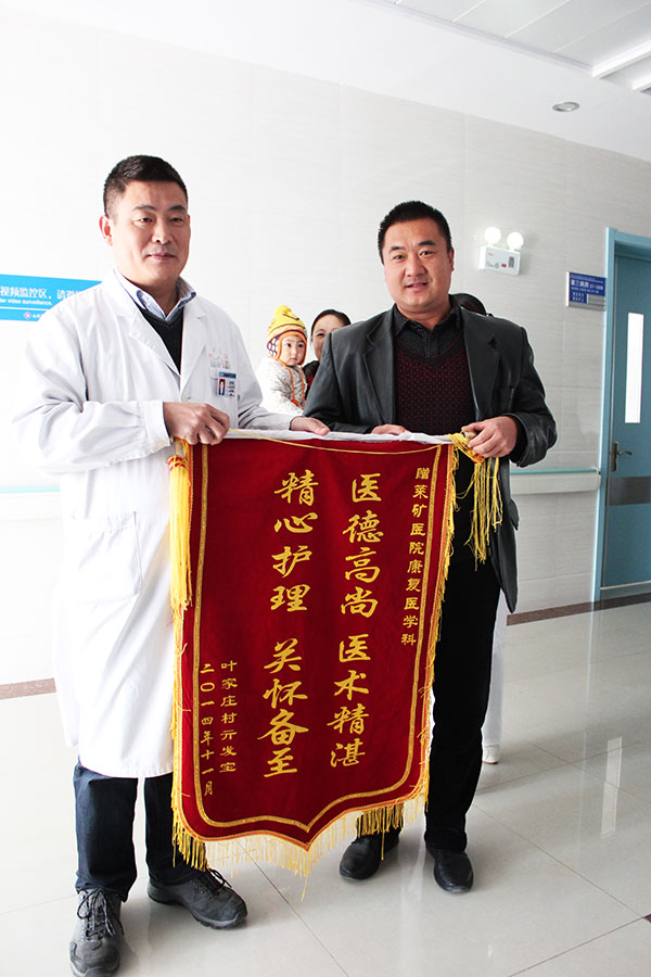 11月13日讯 ( 记者 李淑洁)“徐医生,我太感谢你们了!”11月12日上午,患者亓某的家属将一面镶有“医德高尚,医术精湛,精心护理,关怀备至”的红色锦旗送到莱矿医院康复医学科,以此赞扬该科室全体医护人员精湛的医术、高尚的品德和关怀备至的工作态度。