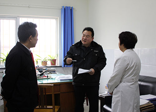 (12月15日讯 李淑洁)为进一步规范医疗机构的执业行为,提高医疗服务质量和水平,市卫生局将今年确定为医疗机构综合监督执法年,对全市大中型医疗机构开展了全方位、无缝隙的综合执法检查。12月10日上午,市卫生局卫生监督行政执法检查组一行6人,在郇政山的带领下对医院进行综合执法检查,我院党委书记、副院长刘伟,医务科主任王延国陪同。