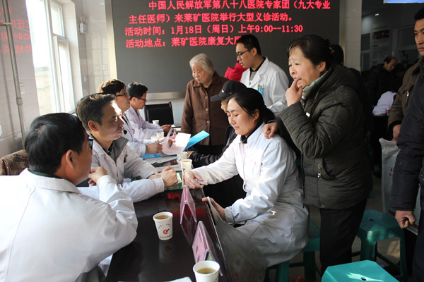 1月19日讯 ( 记者 李淑洁) 中国人民解放军第八十八医院专家应莱矿医院特别邀请,于1月18日来莱矿医院进行现场义诊、学术交流活动。便民、惠民,回馈社会是此次大型义诊活动的主旨。活动受到了莱芜市及周边地区患者的欢迎,义诊活动从早上8点半持续到中午12点。据统计,当天就诊咨询的市民达400多人次。