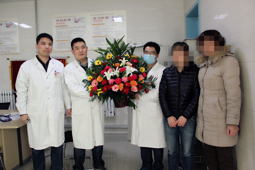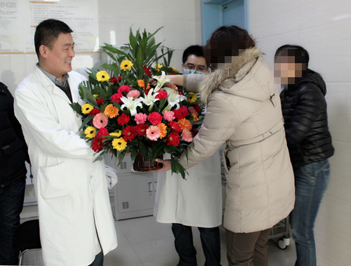 看到父亲情况的大大好转,司女士一家子终于按捺不住感激之情,把一束鲜花送给了医德高尚的医务人员,以表谢意。